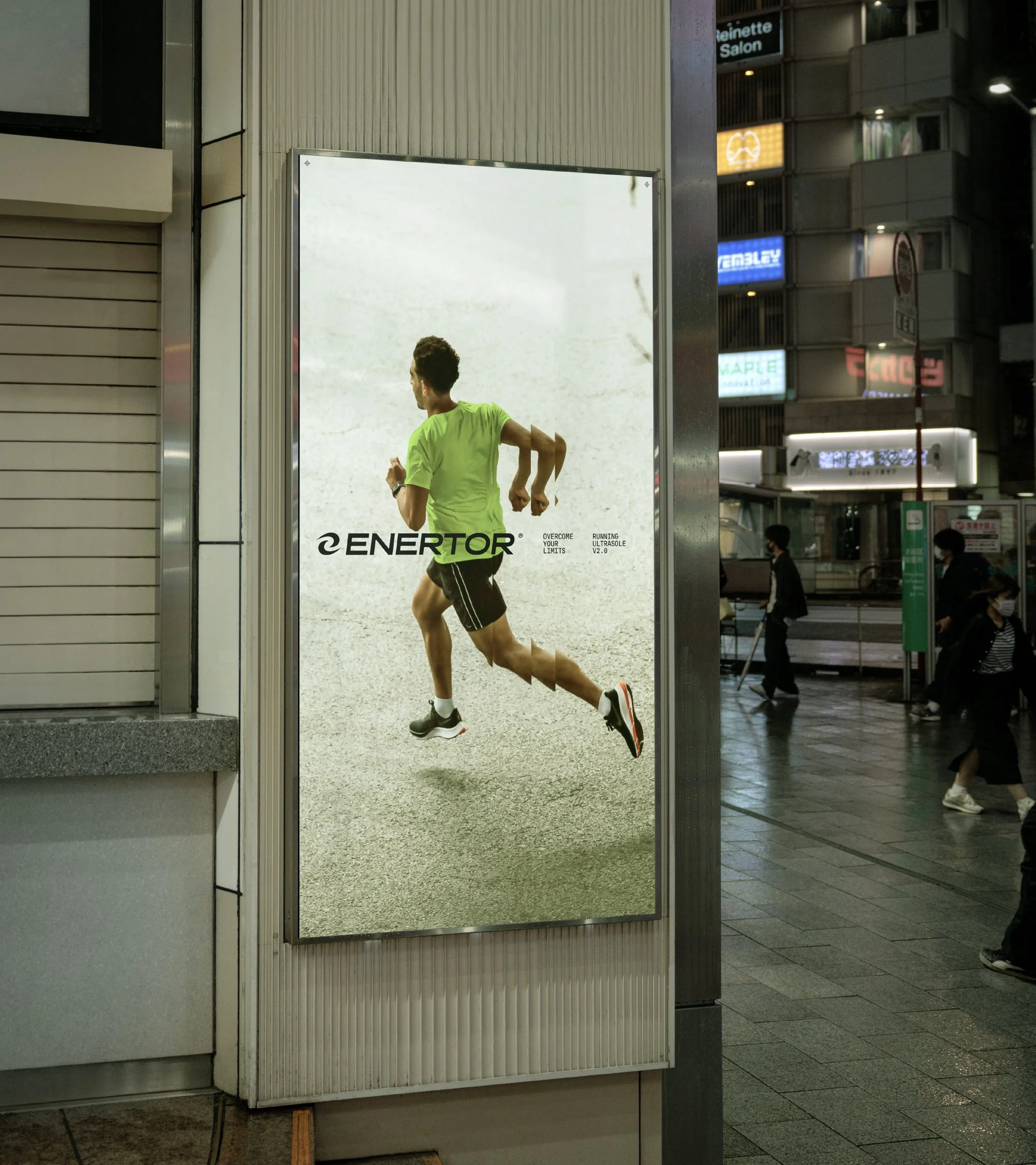 The challenge was to shift Enertor from pain relief orthopaedics to aspirational sports brand, with standout visibility and modern appeal.